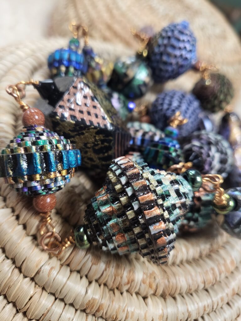 Come craft your own fabulous beads as we welcome a new guest artist, Elisa! She has some fantastic skills in crafting these amazing beads. It’s hard to believe that these started out from nothing more than a bit of cardboard!