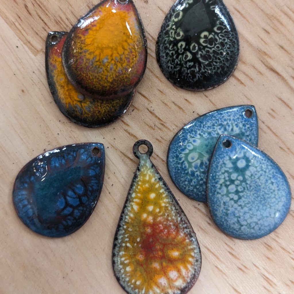 - Whats included: 4 copper blanks, findings, and a variety of powder glass colors.