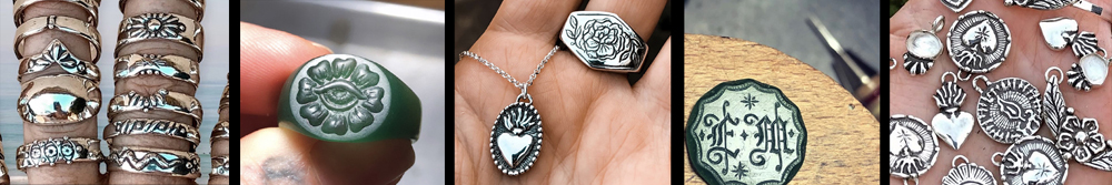 Explore metals from impression plates to texture hammers and design your own unique components. Turn them into charms, pendants, or links to incorperate into your jewelry.